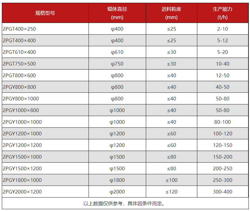 市场生产这类对辊制砂机设备的厂家有很多,不同厂家产出设备型号多少肯定是有差异的。这里以红星对辊制砂机设备为例,具体设备型号规格罗列如下: